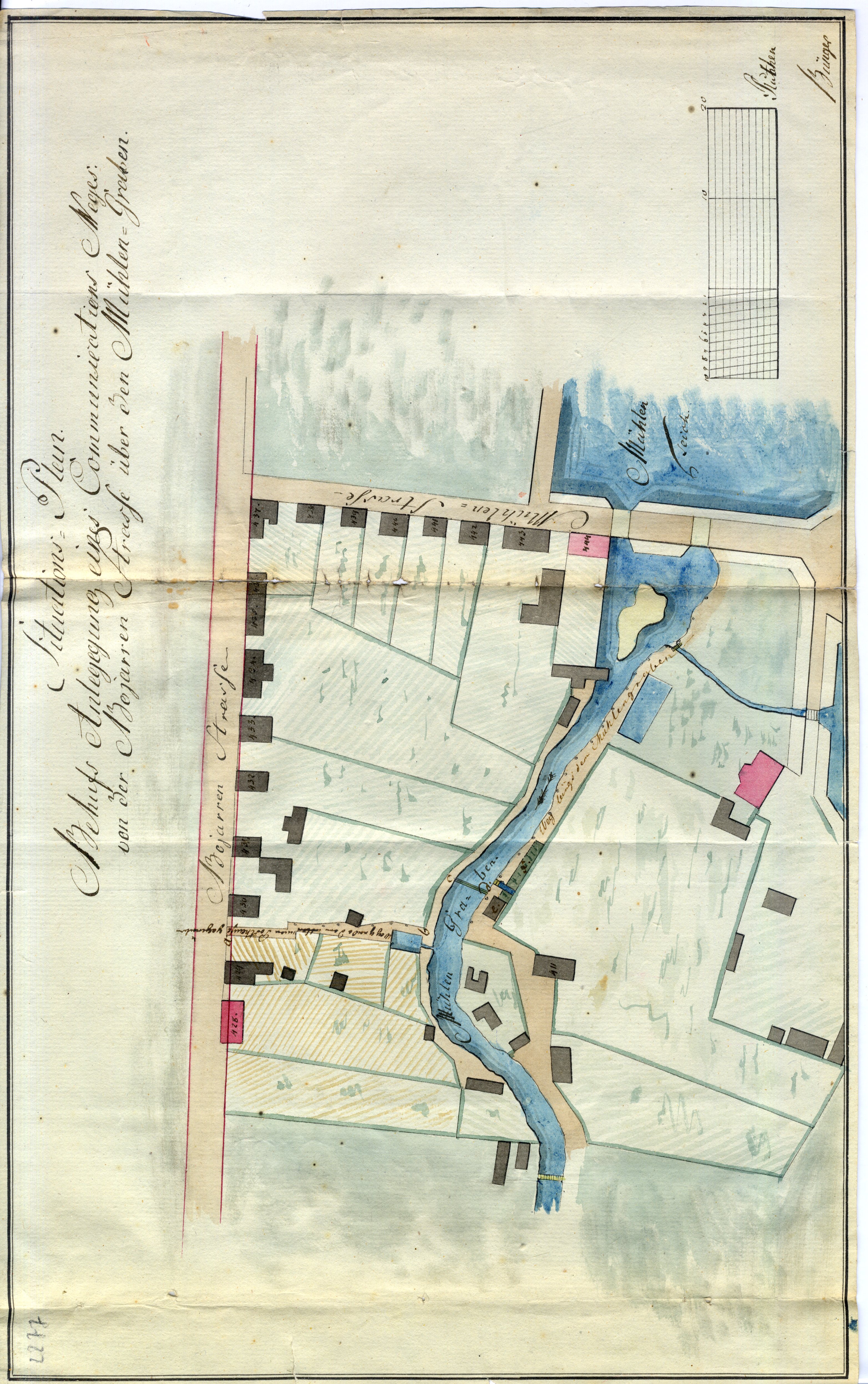 Plan sytuacyjny położenia stacji pocztowej według wyznaczonego prawidłowego wzorca (1807 r.)